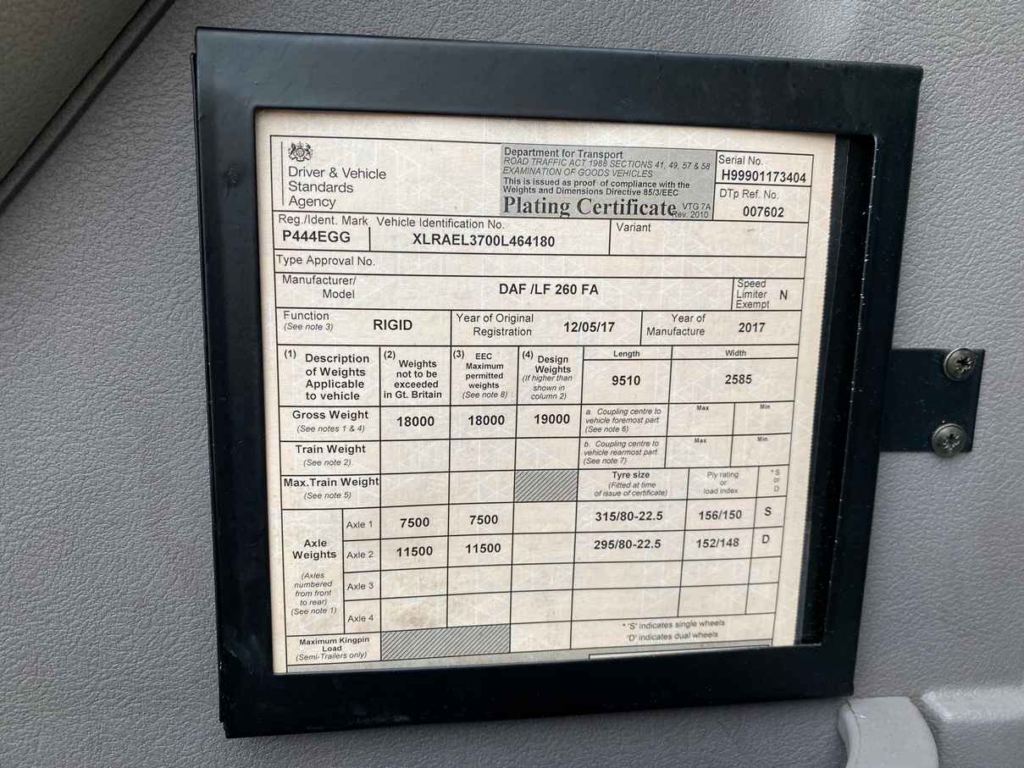 DAF LF 260 *EURO 6* 18 TONNE INSULATED FRIDGE 2017 – DY17 YKV