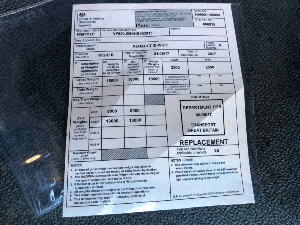 RENAULT D18-250 *EURO 6* 18 TONNE DEMOUNT BOX VAN 2017 – FN67 XYC